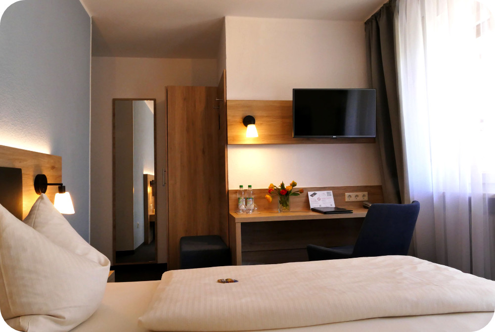 Komfortable Zimmer, starkes WLAN, reichhaltiges Frühstück, direkt im Zentrum. Perfekt für Geschäftsreisen, Wochenendtrips und Messegäste.